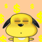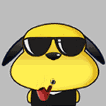 卢卡是一只无忧无虑的小黄狗,两只黑色耳朵如双马尾。