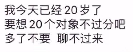 我今天已经20岁了,要想20个对象不过分吧,多了不要聊不过来