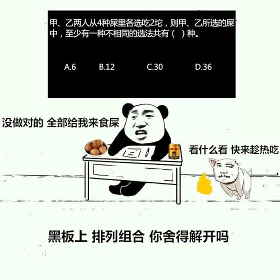 甲、乙两人从4种屎里各选吃2坨,则甲、乙所选的屎中,至少有一种不相同的选法共有几种