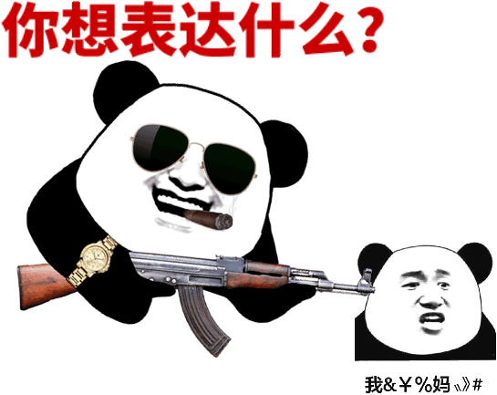 说,接着说啊,我看你们这帮狗东西能说出什么几把!(熊猫头戴墨镜)