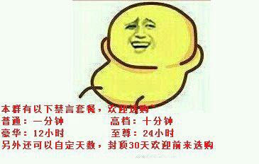 豪华12小时 至尊24小时,另外还可以自定义天数,封顶30天欢迎前来选购本群有以下禁言套餐,欢迎选购,普通一分钟 高档十分钟 豪华12小时 至尊24小时,另外还可以自定义天数,封