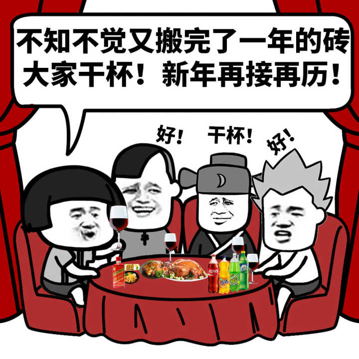 不知不觉又搬完了一年的砖,大家干杯!新年再接再历!好!干杯!的