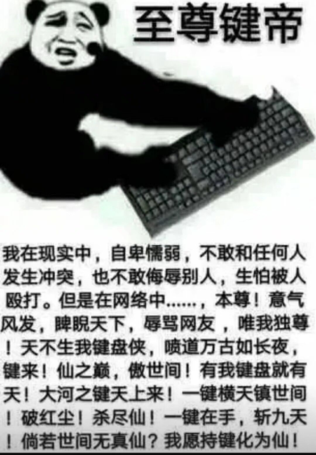 至尊键帝,我在现实中,自卑懦弱,不敢和任何人发生冲突,也不敢侮辱别人,生怕被人殴打。但是在网络中,,本尊!意气风发,睥睨天下,辱骂网友,唯我独尊!天不生我键盘侠,喷道万古如长夜键来!仙之巅,傲世间!有我键盘就有天!大河之键天上来!一键横天镇世间!破红尘!杀尽仙!一键在手,斩九天!倘若世间无真仙?我愿持键化为仙!