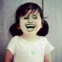 捂脸笑嘴巴流血头上一朵花的妹子