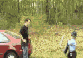 小孩子搬个椅子站在椅子上然后给男的一巴掌