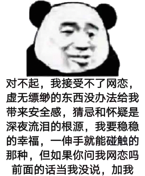 对不起,我接受不了网恋,虚无缥缈的东西没办法给我带来安全感,猜忌和怀疑是深夜流泪的根源,我要稳稳的幸福,一伸手就能碰触的那种,但如果你问我网恋吗前面的话当我没说,加我