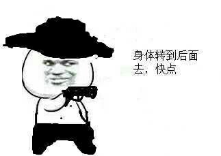 拿枪指着:身体转到后面去,快点