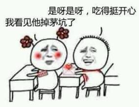 我看见他掉茅坑了,是呀是呀,吃得挺开心!