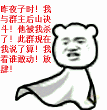 昨夜子时!我与群主后山决斗!他被我杀了!此群现在我说了算!我看谁敢动!放肆