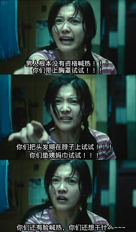 男人根本没资格喊热,你们带上胸罩试试!把头发糊在脖子上试试!垫姨妈巾试试!你们还有脸喊热