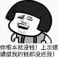 你根本就没钱!上次嫖娼借我的钱都没还我!