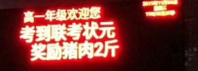 高一年级欢迎您,考到联考状元,奖猪肉2斤
