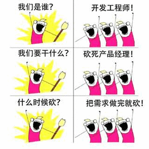 我们是谁?开发工程师!c/3我们要干什么?砍死产品经理!什么时候砍?把需求做完就砍!