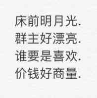 床前明月光,群主好漂亮,谁要是喜欢,价钱好商量