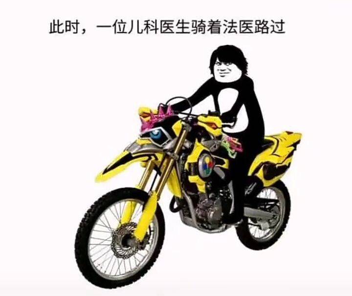 此时,一位儿科医生骑着法医路过