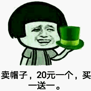 卖帽子,20元一一个,买一送一。