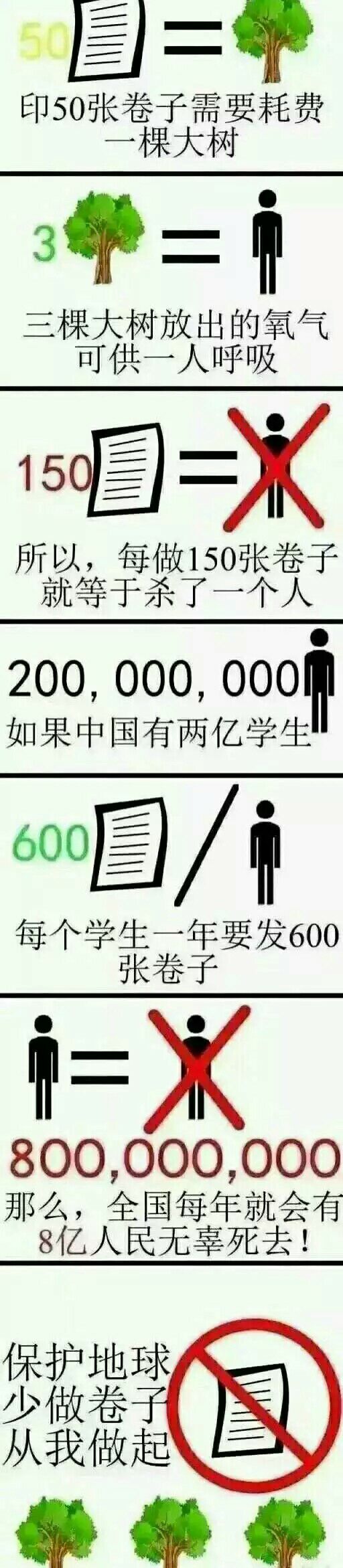 印50张卷子需要耗费一颗大树!