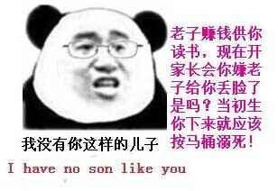 当初生你下来就应该按马桶溺死 I have no son like you我没有你这样的儿子,老子赚钱供你读书,现在开家长会你嫌老子给